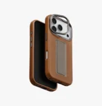 A thoughtful blend of leatherette and clever design, this case is built to keep your phone both protected and easy to use. Band gives you a secure hold with just one hand, while also adding extra peace of mind if it takes a fall. When you want to catch a video or hop on a call, the slim aluminum stand folds out neatly from the camera edge, ready when you are. Subtle, tactile buttons keep every press effortless, and a clean cut-out makes snapping photos quick and easy. With MagClick built in, you’ll enjoy the full convenience of magnetic charging without ever taking the case off.